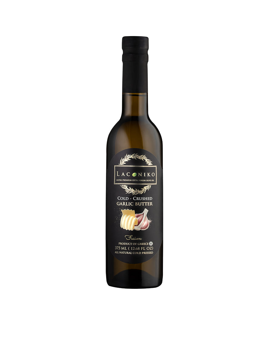 Experience the perfect marriage of two timeless flavors with our Laconiko Garlic Butter Extra Virgin Olive Oil. Crafted from our award-winning early harvest, cold-pressed extra virgin olive oil, this infusion captures the richness of savory roasted garlic and the creamy decadence of butter-without any dairy. It's a heart-healthy, all-natural way to enjoy the comfort of buttery goodness and the aromatic warmth of garlic, with the freshness and purity you expect from Laconiko. Ideal for elevating weeknight meals or impressing at dinner parties, this versatile oil brings gourmet flavor to everyday cooking while honoring our fourth-generation tradition of quality and excellence. Perfect for tossing with roasted vegetables or potatoes, drizzling over fresh pasta, risotto, or warm bread, sautéing seafood, chicken, or mushrooms and creating garlic bread with an elevated twist.